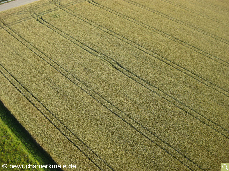 Positive Bewuchsmerkmale zweier Kreisgräben im reifenden Roggen