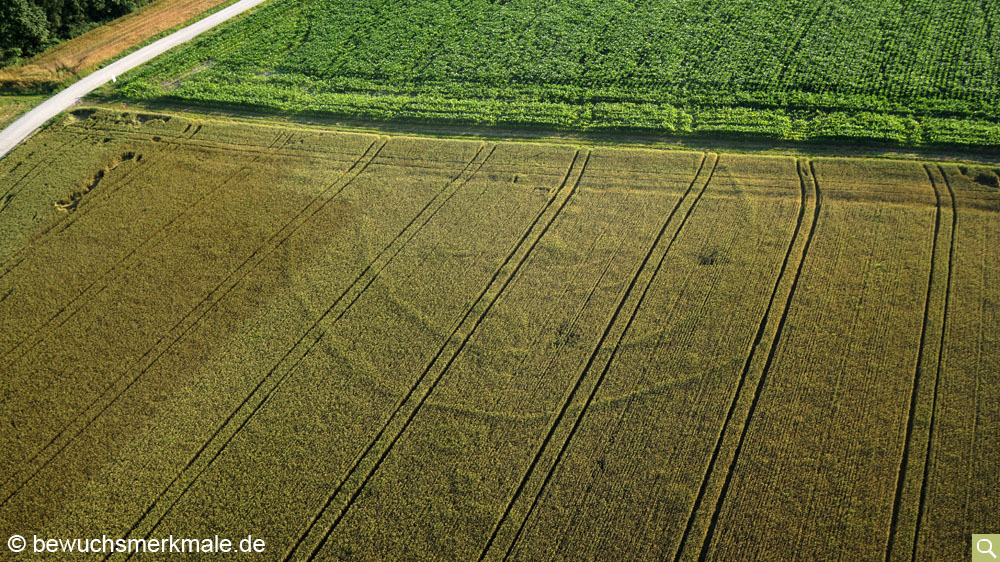Positive Bewuchsmerkmale einer neolithischen Kreisgrabenanlage im reifenden Weizen