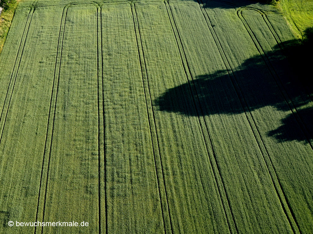 Morgensonne konnten eine größere Anzahl von Grabgruben aufgrund unterschiedlicher Wachstumshöhen der Haferpflanzen festgehalten werden. Wegen der