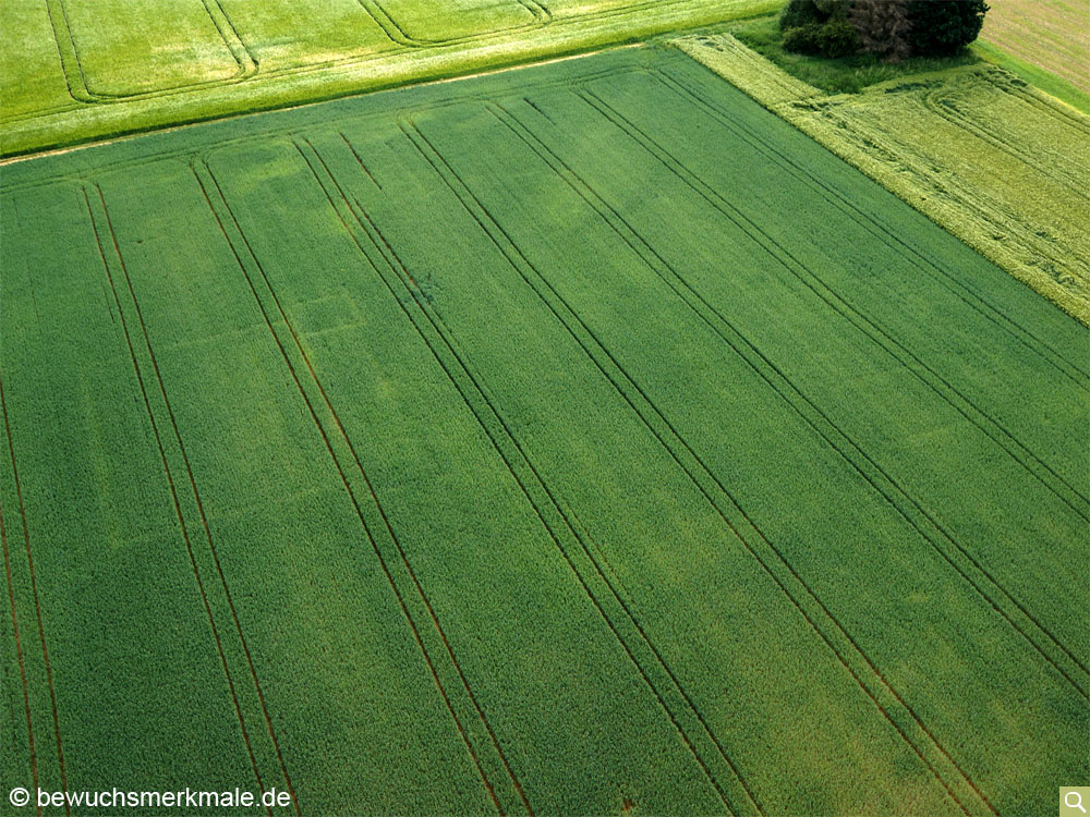 Negative Bewuchsmerkmale zeigen sich im Weizen oft zunächst nur aufgrund von leichten Verfärbungsmerkmalen und geringen Höhenunterschieden