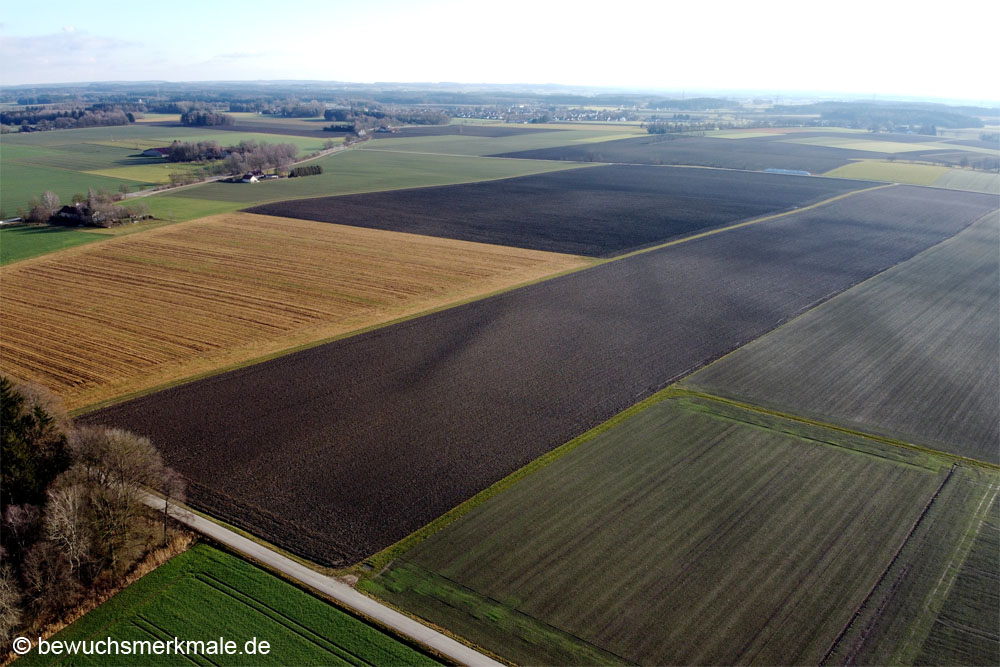 Die Reste einer spätlatènezeitlichen Viereckschanze geben sich durch Bodenverfärbungen zu erkennen (Aufnahmedatum 28.12.2019) |