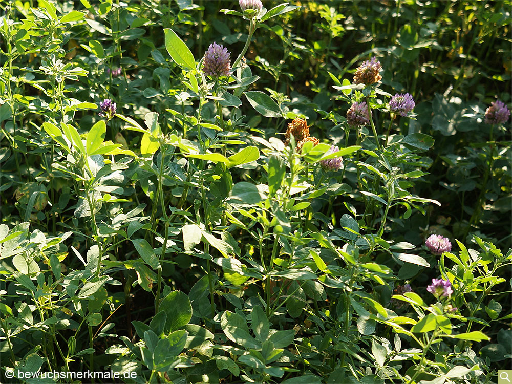 Der Wiesen-Klee zeigt Bewuchsmerkmale durch unterschiedliches Höhenwachstum. Besonders bei Trockenheit können die Unterschiede recht stark ausfallen.Beispiele